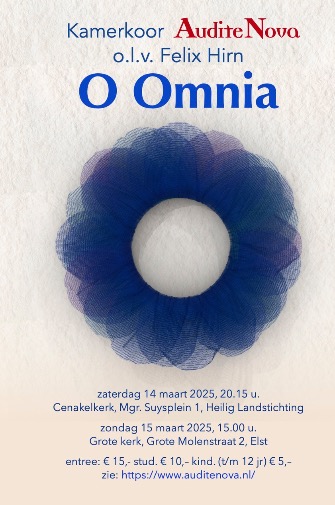 Audite Nova brengt een ode aan iets ogenschijnlijk eenvoudigs: een woord van één letter. De O is misschien wel de meest elementaire klank die een mens kan maken: een open mond, een ronde vorm, adem die stroomt zonder weerstand. In dit programma is de O een uitnodiging om te luisteren naar een waaier van menselijke emoties - verborgen achter slechts één klinker. De O is een oproep, een universele uiting van verlangen, verwondering, pijn, hoop, vreugde en overgave. De O is alles en iedereen: Omnia!